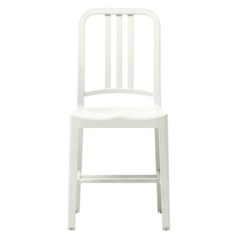 Der Stuhl 111 Navy von Emeco ist eine langlebige und funktionelle Wahl für Esszimmer und Außenbereiche. Der aus recycelten Plastikflaschen hergestellte „111 Navy“-Stuhl wurde in Zusammenarbeit von Emeco und Coca-Cola entwickelt. Für die Herstellung eines Stuhls wurden 111 recycelte PET-Flaschen verwendet. Er wurde mit Glasfaser verstärkt, um eine stabile Konstruktion zu gewährleisten.