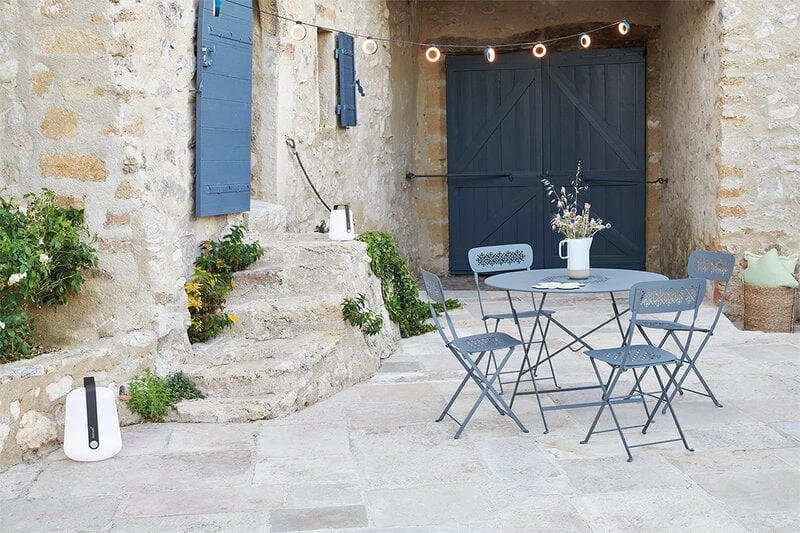 Die Leuchte Balad H38 von Fermob lässt sich auf dem Gartentisch, dem Ast eines Baumes oder im Haus aufstellen. Die kabellose Tischleuchte verfügt über zwei verschiedene Lichtstärken und drei Farbtemperaturen. In Kombination mit dem separat erhältlichen Standfuß wird Balad zu einer stilvollen Stehleuchte.
