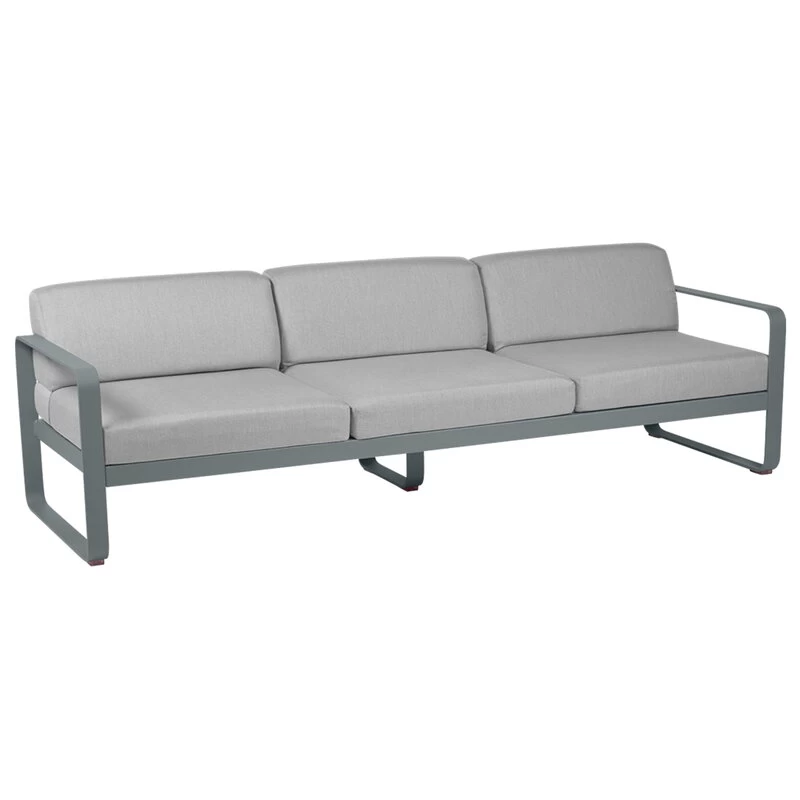 Das Bellevie-Sofa von Fermob bietet einen bequemen Platz zum Sitzen und Entspannen im Freien. Es ist die ideale Wahl für alle, die gerne mit einem guten Buch und einer Tasse Kaffee auf der Terrasse oder im Garten sitzen. Der Look des Outdoor-Sofas wird von einer geometrischen, aber sanft abgerundeten Form dominiert, wodurch es zu einer Vielzahl von Einrichtungsstilen passt. Das 3-Sitzer-Sofa ist auch bei unbeständigem Wetter sehr strapazierfähig: Das Gestell besteht aus leichtem, aber robustem Aluminium, die Kissen sind mit wasserabweisendem, UV-beständigem Sunbrella-Stoff bezogen.