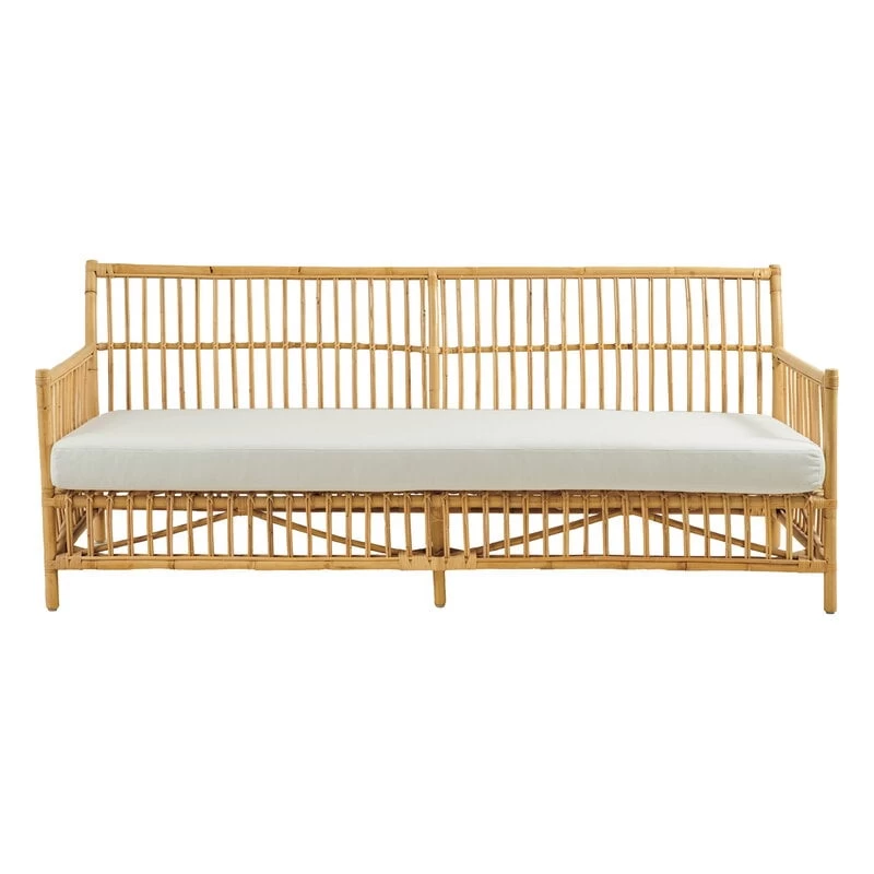 Das Caroline-Sofa wird von Hand aus nachhaltig bezogenem indonesischem Rattan geflochten, was jedes Sofa zu einem Unikat macht. Das natürliche Material trägt zu seinem einzigartigen Charme bei: Rattan zeichnet sich durch eine lebendige Oberfläche mit unterschiedlichen Schattierungen oder Jahresringen aus.