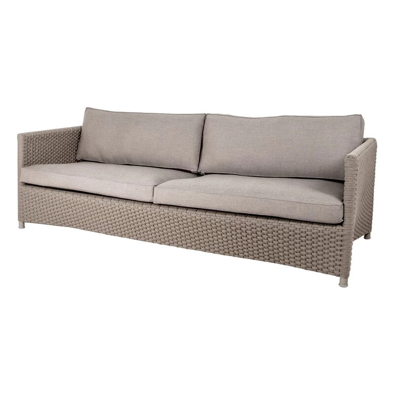 Das Diamond-Sofa von Cane-line passt mit seinem schlanken Design perfekt in jede Sommeroase auf dem Balkon oder der Terrasse. Das von Foersom & Hiort-Lorenzen entworfene Sofa aus synthetischem Rattan ist mit dem hochwertigen Natté-Gewebe von Cane-line bezogen, das sowohl Regen als auch Sonnenschein standhält. Die Sitzkissen enthalten eine bequeme, schnell trocknende Schaumstoffpolsterung, die sich ideal für den Einsatz im Freien eignet.