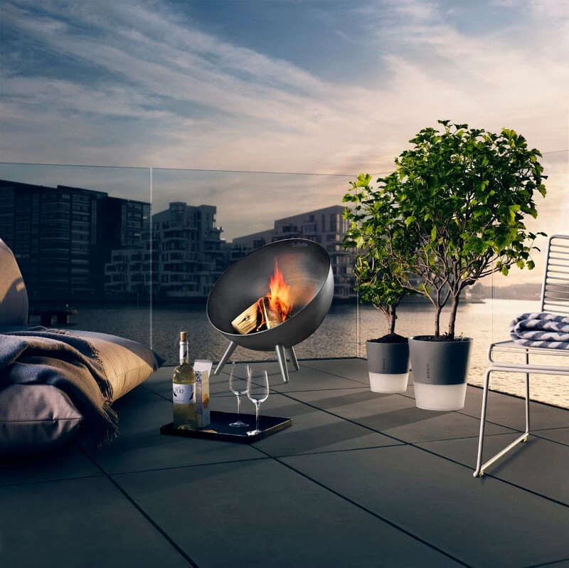 Der Außenkamin FireGlobe von Eva Solo schafft eine gemütliche und angenehme Atmosphäre und wärmt Sie in kühlen Nächten auf der Terrasse oder im Garten. Das Design des runden FireGlobe ist skulptural und innovativ zugleich: Durch den integrierten Griff lässt er sich leicht anheben und bewegen. Die höhere Rückwand bietet Windschutz und der Gitterboden sorgt für die Belüftung. Mit dem FireGlobe können Sie die Atmosphäre eines echten Lagerfeuers in Ihrem eigenen Garten genießen!