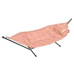 Die Headdemock von Fatboy eignet sich perfekt zum Faulenzen an entspannten Sommertagen. Die moderne Hängematte braucht keine Bäume – da sie mit einem stabilen Gestell ausgestattet ist, können Sie sie an Ihrem Lieblingsplatz aufstellen, ob das nun auf Ihrer Terrasse, Ihrem Balkon, in Ihrem Garten oder am Strand ist. Headdemock ist aus strapazierfähigem, wasser-, schmutz- und UV-beständigem Gewebe gefertigt, das sich ideal für den Außengebrauch eignet. Darüber hinaus ist die Hängematte in verschiedenen schönen Farben erhältlich und groß genug, um sie zu zweit genießen zu können. Zu diesem Set gehört auch ein großzügig bemessenes, mit weichem Polypropylen gefülltes Headdemock-Kissen, das ganz einfach am Loch in der Hängematte befestigt werden kann, so dass es auch bei längeren Liegezeiten an seinem Platz bleibt.