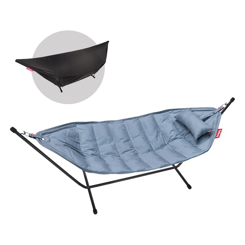 Die „Headdemock Superb Deluxe“-Hängematte von Fatboy ist perfekt zum Faulenzen an entspannten Sommertagen geeignet. Die moderne Hängematte benötigt keine Bäume in der Nähe, da sie mit einem stabilen Gestell ausgestattet ist. Sie können sie problemlos an Ihrem Lieblingsplatz aufstellen, egal ob auf der Terrasse, auf dem Balkon, im Garten oder am Strand.