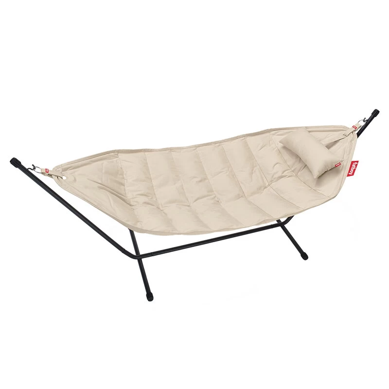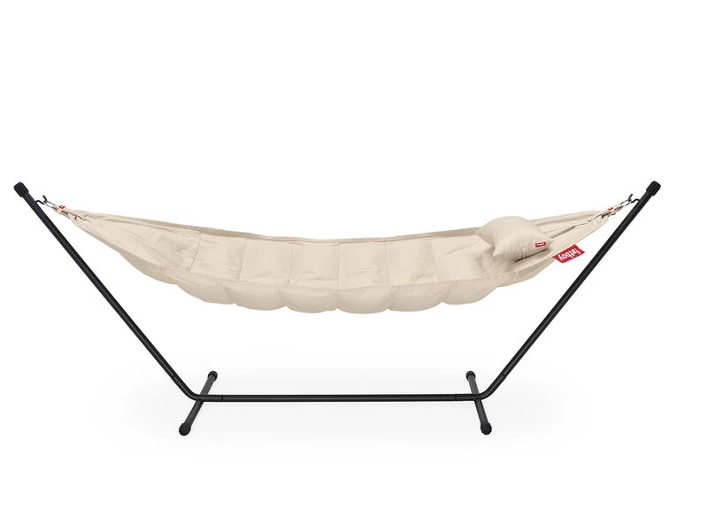 Die „Headdemock Superb Deluxe“-Hängematte von Fatboy ist perfekt zum Faulenzen an entspannten Sommertagen geeignet. Die moderne Hängematte benötigt keine Bäume in der Nähe, da sie mit einem stabilen Gestell ausgestattet ist. Sie können sie problemlos an Ihrem Lieblingsplatz aufstellen, egal ob auf der Terrasse, auf dem Balkon, im Garten oder am Strand.