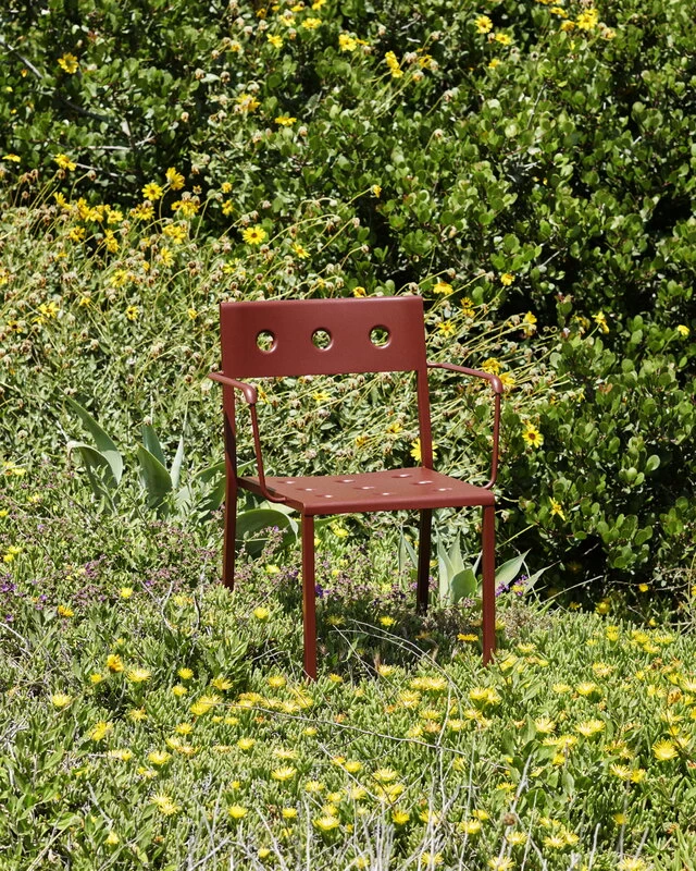 Der Balcony-Armlehnstuhl von HAY ist Teil einer raffinierten Outdoor-Möbelkollektion, die von den Bouroullec-Brüdern entworfen wurde. Der aus dünnem Stahlblech gefertigte, elegante Armlehnstuhl ist unglaublich leicht und lässt sich mühelos am gewünschten Ort platzieren. Er ist zudem stapelbar und dadurch besonders platzsparend. Der perfekte Begleiter für Balkon, Garten oder Terrasse.