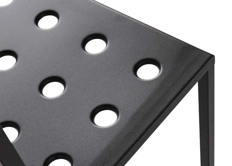 Die Balcony-Loungebank von HAY ist Teil einer raffinierten Outdoor-Möbelkollektion, die von den Bouroullec-Brüdern entworfen wurde. Die aus dünnem Stahlblech gefertigten, eleganten Outdoor-Bänke und -Stühle der Balcony-Reihe sind unglaublich leicht und lassen sich mühelos am gewünschten Ort platzieren. Die perfekten Begleiter für Garten, Innenhof, Terrasse oder Balkon. Die runden Löcher im Stahlblech erfüllen mehrere Zwecke: Zum einen verleihen sie dem geometrischen Design eine individuelle und weiche Note, zum anderen lassen sie Regenwasser an der Oberfläche der Bank leichter ablaufen und verstärken die Möbelstruktur. Eine wetterbeständige Beschichtung macht die Balcony-Kollektion außerdem besonders pflegeleicht.