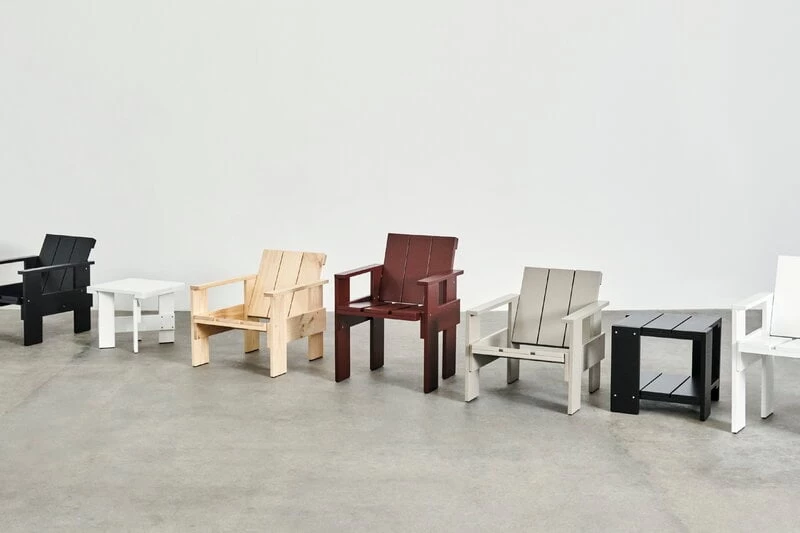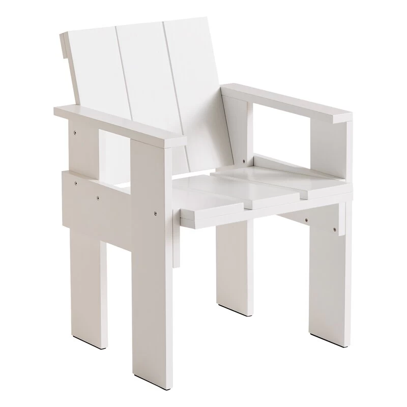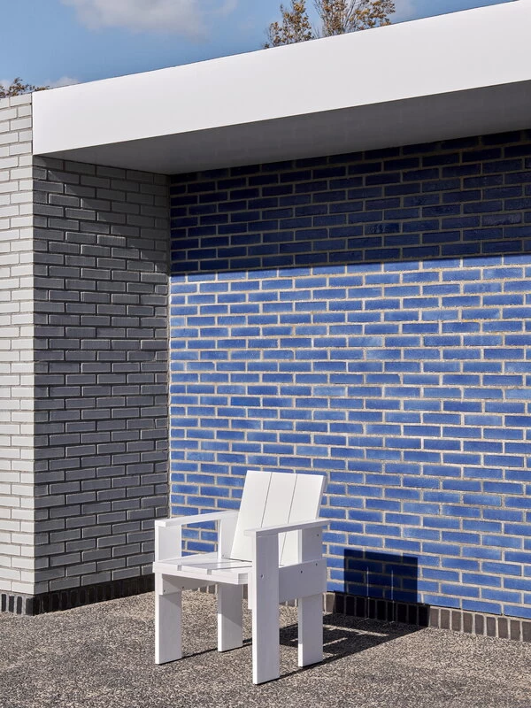 Der Crate-Terrassenstuhl orientiert sich am Originalstuhl, der 1934 vom niederländischen Architekten und Designer Gerrit Thomas Rietveld kreiert wurde. Zu jener Zeit wurde der Stuhl noch aus Holzresten von Frachtkisten hergestellt, in Rietvelds Originalen und der Reinterpretation von HAY kam jedoch lackiertes Kiefernholz zum Einsatz. Der Crate-Esszimmerstuhl wird mit einer wetterfesten Beschichtung überzogen und eignet sich daher ideal für Außenbereiche, ob Terrasse, Garten oder Balkon.