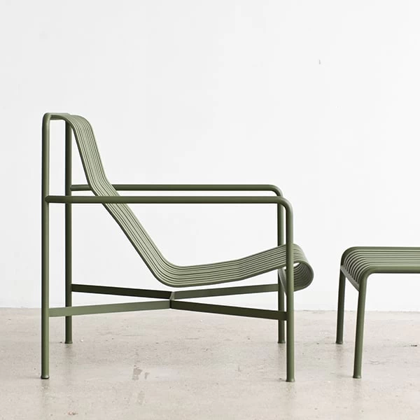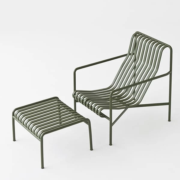Der schlichte und dennoch robuste Fußhocker Palissade ist Teil der vielseitigen Outdoormöbel-Kollektion von HAY. Die Palissade-Outdoormöbel zeichnen sich durch ein starkes, grafisches Design aus, das aus einfachen Stahlrohren und -latten besteht. Ronan und Erwan Bouroullec arbeiteten zwei Jahre lang an der Kollektion und schufen eine Reihe von ausgewogenen Stücken, die sich gut für Terrassen, Balkone, Gärten, Cafés und öffentliche Räume eignen. Die Stühle, Tische und Bänke von Palissade sind robust, aber elegant und perfekt für den Außenbereich geeignet, da sich Wind und Wasser problemlos durch das verzinkte Stahlgestell bewegen können. Die Palissade-Möbel haben ein zeitloses Design, und ihre gedeckten Farben tragen zu einem zeitlosen und vielseitigen Erscheinungsbild bei.
