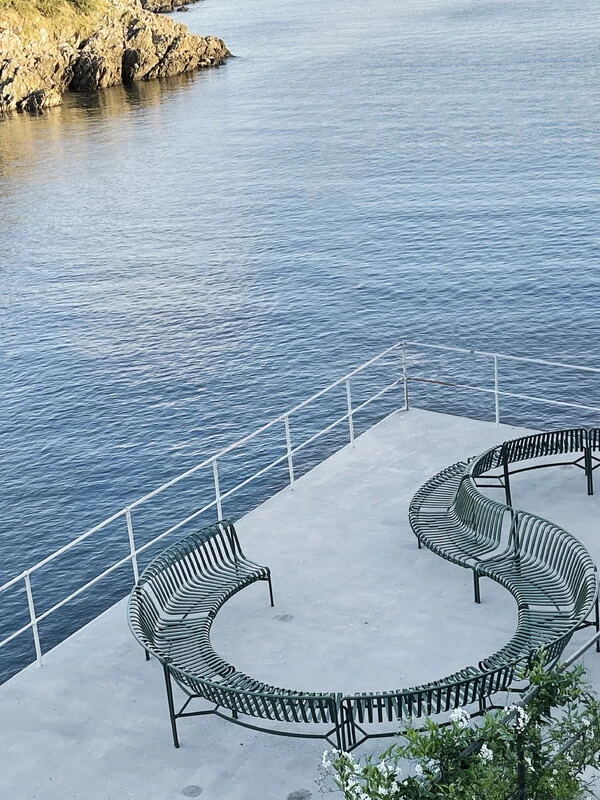 Die Palissade-Outdoormöbel zeichnen sich durch ein starkes, grafisches Design aus, das aus einfachen Stahlrohren und -latten besteht. Ronan und Erwan Bouroullec schufen eine Reihe von schlichten, ausgewogenen Stücken, die sich gut für Terrassen, Balkone, Gärten, Cafés und öffentliche Räume eignen. Die Stühle, Tische und Bänke von Palissade sind robust, aber elegant und perfekt für den Außenbereich geeignet, da sich Wind und Wasser problemlos durch das verzinkte Stahlgestell bewegen können. Die Palissade-Möbel haben ein zeitloses Design, und ihre gedeckten Farben tragen zu einem zeitlosen und vielseitigen Erscheinungsbild bei.