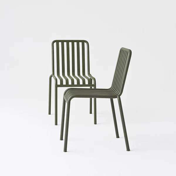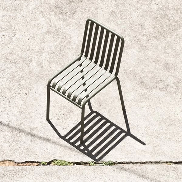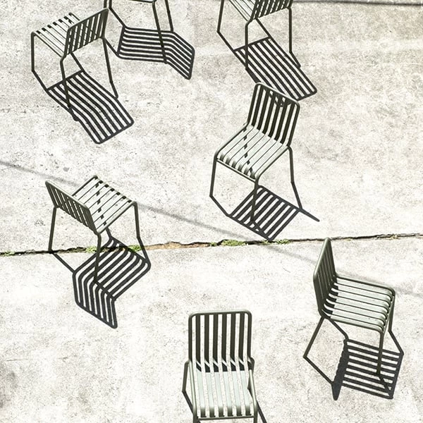 Der schlichte und dennoch robuste Stuhl Palissade ist Teil der vielseitigen Outdoor-Möbelkollektion von HAY. Die Palissade-Outdoormöbel zeichnen sich durch ein starkes, grafisches Design aus, das aus einfachen Stahlrohren und -latten besteht. Ronan und Erwan Bouroullec arbeiteten zwei Jahre lang an der Kollektion und schufen eine Reihe von ausgewogenen Stücken, die sich gut für Terrassen, Balkone, Gärten, Cafés und öffentliche Räume eignen. Die Stühle, Tische und Bänke von Palissade sind robust, aber elegant und perfekt für den Außenbereich geeignet, da sich Wind und Wasser problemlos durch das verzinkte Stahlgestell bewegen können. Die Palissade-Möbel haben ein zeitloses Design, und ihre gedeckten Farben tragen zu einem zeitlosen und vielseitigen Erscheinungsbild bei.