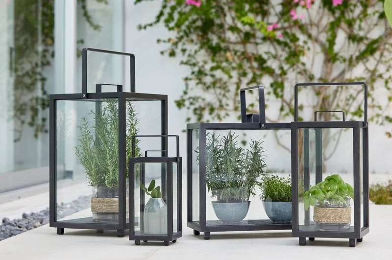 Die Lighthouse Laterne von Cane-line ist das Nonplusultra für jede Terrasse oder Gartenanlage. Die Laterne ist aus dunklem Aluminium sowie transparentem Glas gefertigt und bietet eine sichere und elegante Möglichkeit, eine warme Atmosphäre im Innen- oder Außenbereich zu schaffen. Genießen Sie skandinavisches Design und dunkle Nächte, während Sie das sanfte Flackern des Feuers beobachten. Neben einer Laterne kann Lighthouse auch als Mini-Gewächshaus für Kräuter, Kakteen und andere Zimmerpflanzen verwendet werden.