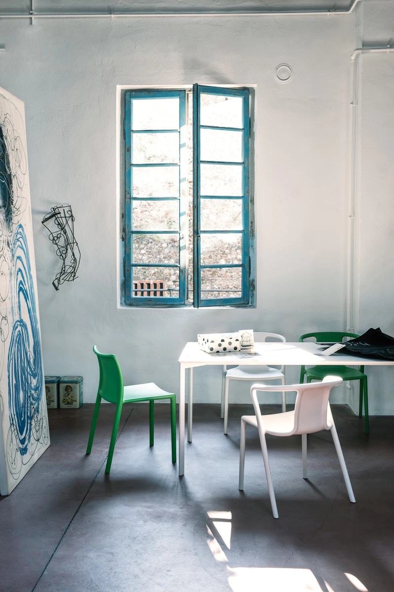 Der Air-Sessel von Magis ist ein echtes Multitalent und zeichnet sich durch sein geringes Gewicht sowie seine moderne und minimalistische Optik aus. Der von Jasper Morrison entworfene Stuhl vereint Ästhetik und Funktion. Der Stuhl lässt sich problemlos stapeln sowie reinigen und ist sowohl für den Innen- als auch Außenbereich geeignet. Der Name „Air“ der Kollektion hat seinen Ursprung in der besonderen Herstellungsmethode, der Blasform-Technik, die eine extrem langlebige und dennoch luftige Konstruktion ermöglicht. Die Air-Möbel bestehen aus einer Polypropylen-Glasfaser-Mischung und sind eine stilvolle und zeitlose Ergänzung sowohl für private als auch für öffentliche Bereiche.