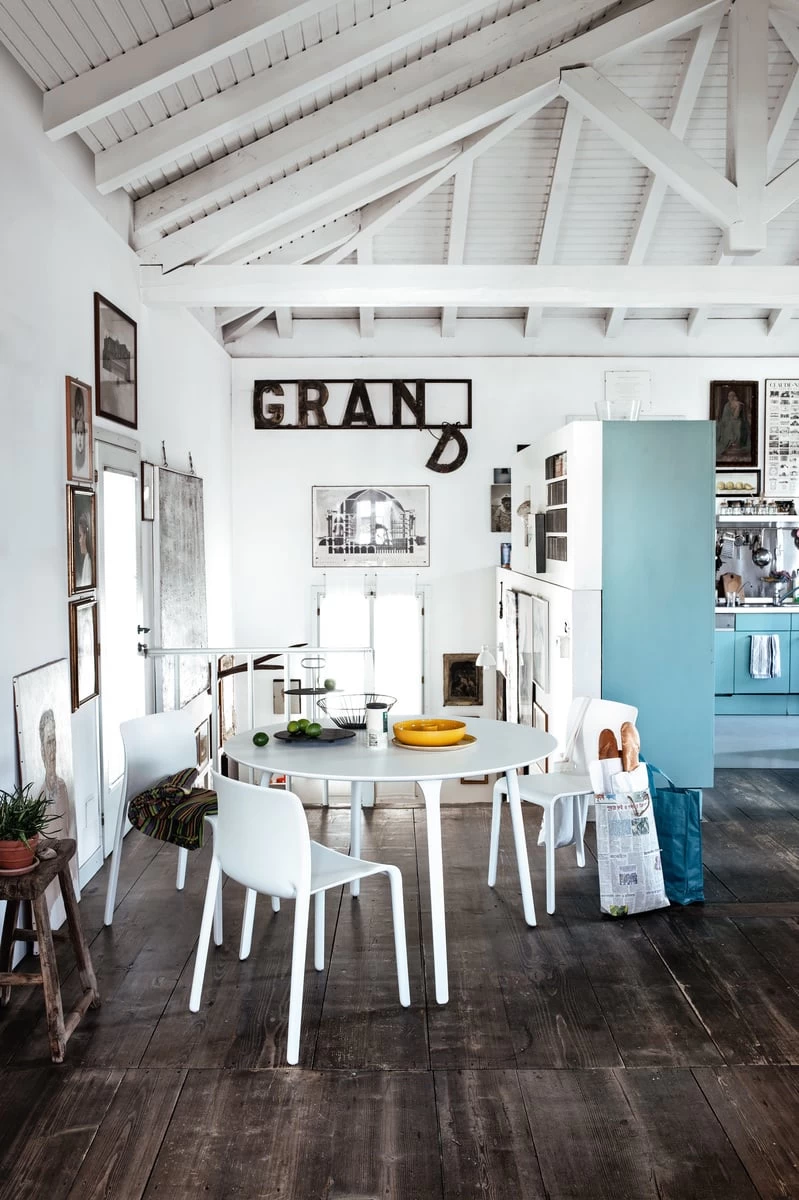 Der First-Stuhl von Magis wurde 2007 von dem italienischen Architekten und Industriedesigner Stefano Giovannoni entworfen. Der First-Stuhl aus Polypropylen und Glasfasern wird im Air-Moulding-Verfahren hergestellt, das zu seinem stromlinienförmigen, geschwungenen und dreidimensionalen Design beiträgt. Der First-Stuhl ist leicht, langlebig und stapelbar. Er ist sowohl für den Innen- als auch für den Außenbereich geeignet und passt mit seinem minimalistischen Design perfekt zu den Tischen der First-Kollektion von Magis.