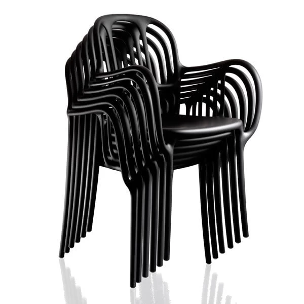 Der Stuhl Milà von Magis ist das erste Kunststoffprodukt des Designers Jaime Hayòn. Mit einer gasunterstützten Spritzgusstechnik gelang es Hayón, einen Kunststoffstuhl herzustellen, der nicht mit traditionellen Materialien wie Holz hätte hergestellt werden können. Der elegante Milà besticht durch seine natürlichen und dynamischen Formen, die für den katalanischen Modernismus charakteristisch sind. Der leichte Stuhl verfügt über schlanke Beine und ornamentale Rücken- und Armlehnen, die sowohl im Innen- als auch im Außenbereich wunderschön aussehen.