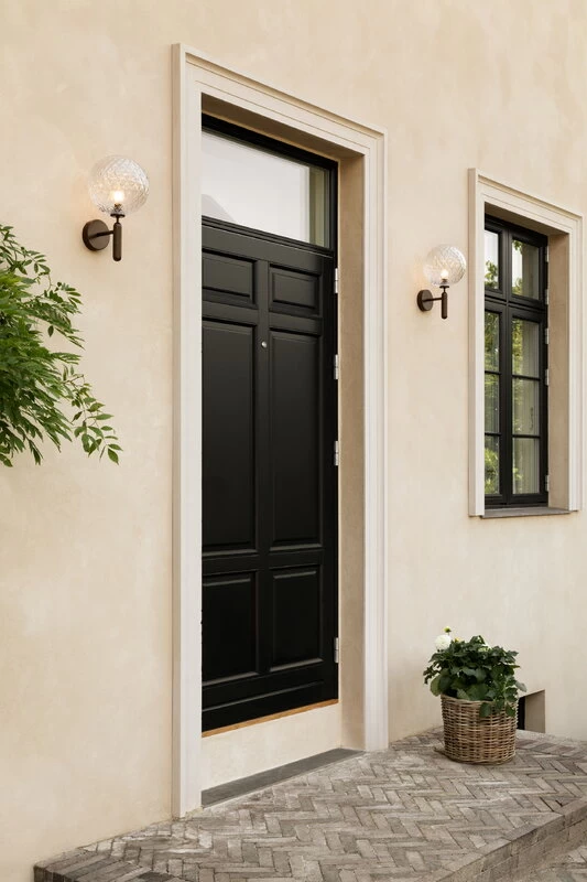 Die Miira-Outdoor-Wandleuchte der dänischen Marke Nuura besticht durch eine formschöne Kuppel aus geprägtem Glas, die ein stimmungsvolles Licht spendet. Der elegante Metallsockel bildet einen wohlüberlegten Kontrast zum Design. Die wetterfeste Miira-Outdoor-Wandleuchte wurde speziell für den Außenbereich, wie Hauseingänge und Fassaden, entworfen.