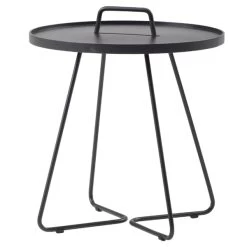 Der On-the-move von Cane-line ist ein fröhlicher und multifunktionaler Beistelltisch, der sowohl für den Innen- als auch für den Außenbereich geeignet ist. Aus robustem und leichtem Aluminium gefertigt und mit einem Griff ausgestattet lässt sich On-the-move leicht von einem Ort zum anderen bewegen. Die abnehmbare Tischplatte fungiert auch als Tablett, das abgehoben und separat verwendet werden kann. On-the-move ist ein perfekter Beistelltisch für Terrasse, Balkon oder Garten, aber auch ein praktischer, moderner Sofatisch im Wohnzimmer. Der Tisch wurde von dem dänischen Designbüro Stand+Hvass entworfen.