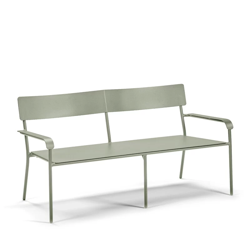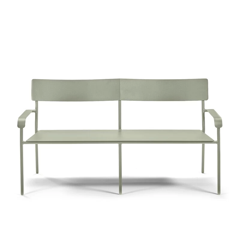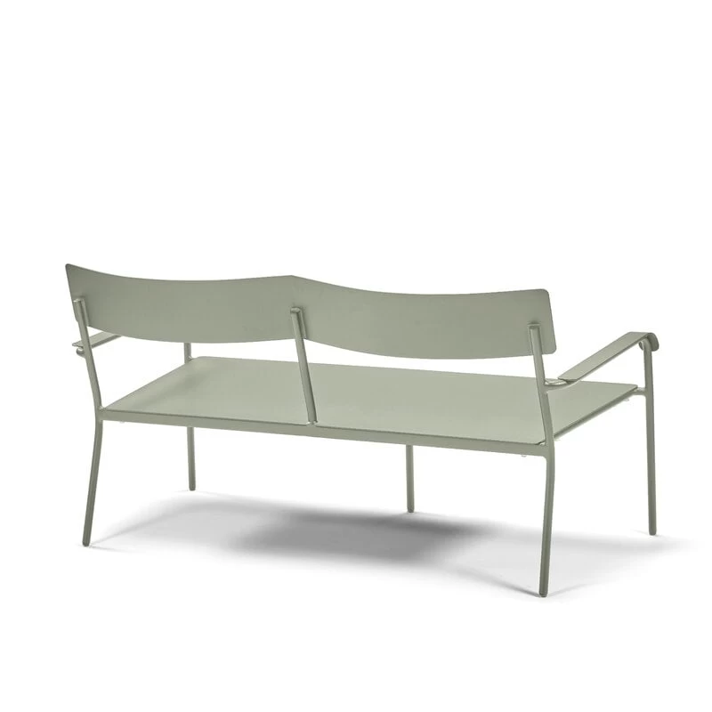 Die August-2-Sitzer-Bank von Serax besteht aus pulverbeschichtetem Aluminium und eignet sich sowohl für Innen- als auch für Außenbereiche. Die Metallbank mit robuster Rückenlehne und Armlehnen macht sich im Garten oder auf der Terrasse ebenso gut wie am Esstisch im Haus.