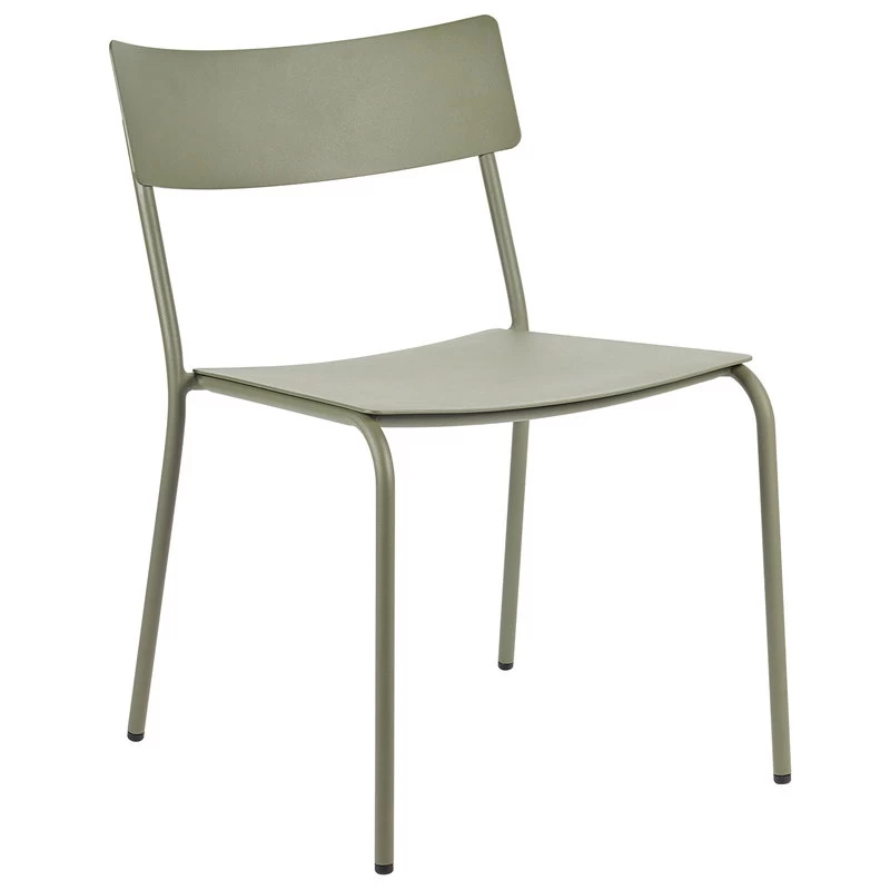 Der August-Stuhl von Serax besteht aus pulverbeschichtetem Aluminium und ist sowohl für den Innen- als auch für den Außengebrauch geeignet. Der breitere, relativ niedrige Stuhl fühlt sich im Garten oder auf der Terrasse ebenso wohl wie neben einem Esstisch oder Schreibtisch im Haus.