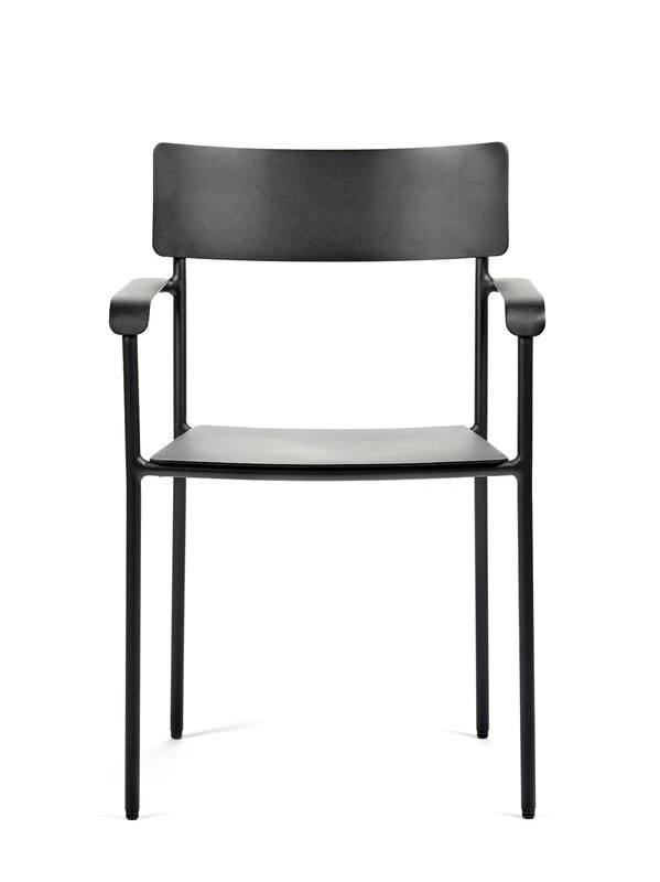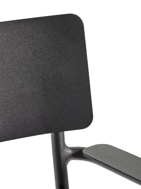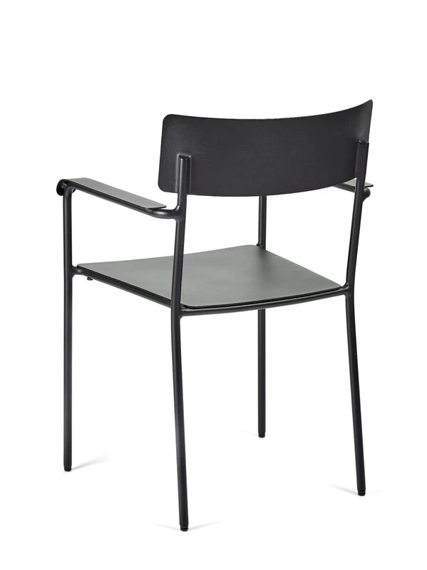 Der August-Stuhl von Serax besteht aus pulverbeschichtetem Aluminium und ist sowohl für den Innen- als auch für den Außenbereich geeignet. Der kompakte, relativ hohe Armlehnstuhl macht sich im Garten oder auf der Terrasse ebenso gut wie neben dem Esstisch oder Schreibtisch im Haus.