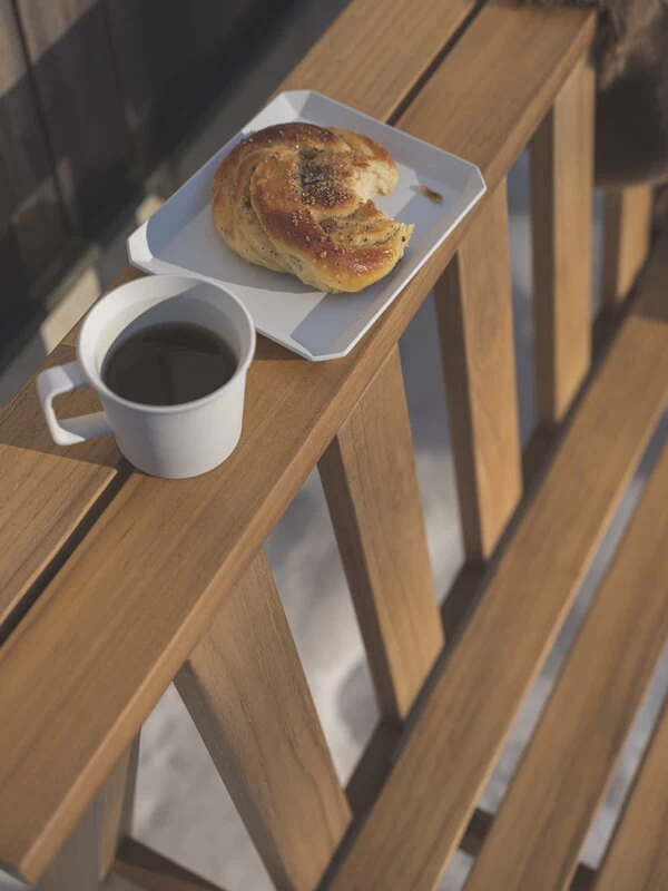 Die Bank Plank von Skagerak, die von Aurelien Barbry entworfen wurde, ist eine schöne Outdoor-Bank, die den organischen Charakter von Teakholz mit klaren, kantigen Linien kombiniert. Die Bank Plank verfügt über zwei horizontale Bretter an der Oberseite der Rückenlehne, auf der Sie kleine Blumentöpfe, ein Weinglas und ein Buch oder Windlichter abstellen können, um dunkle Sommerabende im Garten zu erhellen. Wenn Sie es noch bequemer möchten, können Sie ein separat erhältliches Kissen auf die Bank legen.
