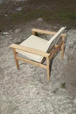 The Barriere outdoor padding is upholstered in Oeko-Tex-certified Agora Panama, a synthetic but cotton-like fabric designed for outdoor use. The low-maintenance upholstery repels water and dirt and withstands well in the sun without fading. The cushion is filled with natural Kapok that resembles cotton, is hypoallergenic and maintains its shape well.
