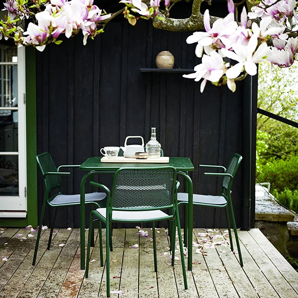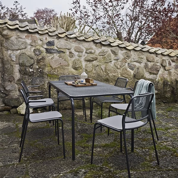Die von Mia Lagerman für Skagerak entworfene Kollektion Mira umfasst zeitgenössische Outdoor-Möbel, die sich durch ein einfaches und luftiges Design auszeichnen. Die schlanken Möbelstücke bestehen aus einem Stahlrahmen und Drahtgitterelementen, durch die das Regenwasser einfach durchfließen kann. Die Mira-Kollektion besteht aus einem Stuhl, einem Sessel und zwei Tischen, die eine stilvolle Ergänzung für jede Terrasse, jeden Balkon oder Garten sowie jedes Gartenhaus darstellen.