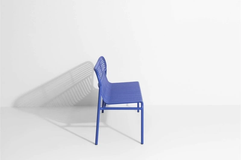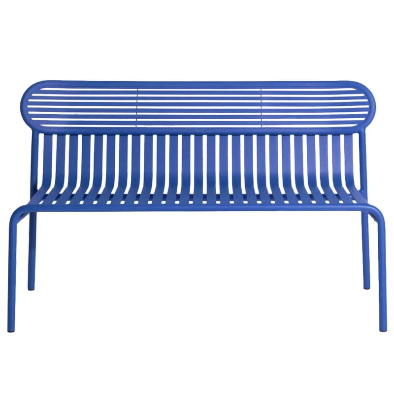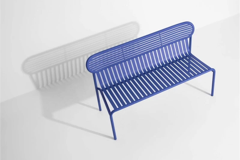 Die Bank Week-end ist Teil der Petite-Friture-Kollektion, die Aluminiummöbel für den Außengebrauch umfasst. Die Bank Week-end zeichnet sich durch ovale Formen mit sowohl horizontalen als auch vertikalen Lamellen an der Rückenlehne aus. Die Bank passt ideal zu den Tischen der Week-end-Kollektion.