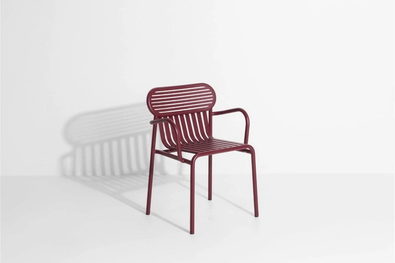 Der Brückenstuhl Week-end ist Teil der Petite-Friture-Kollektion, die Aluminiummöbel für den Außengebrauch umfasst. Der attraktive Stuhl zeichnet sich durch ovale Formen mit sowohl horizontalen als auch vertikalen Lamellen an der Rückenlehne aus. Alle Stühle der Serie Week-end sind stapelbar.