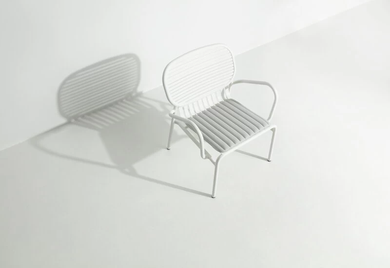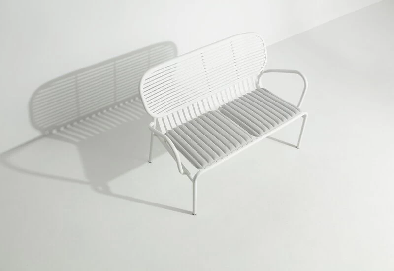Die vom Design-Duo BrichetZiegler entworfenen Outdoor-Möbel der Week-end-Kollektion von Petite Friture kombinieren verschiedene geometrische Formen mit funktionalem, zeitgenössischem Design. Die Aluminiumkonstruktion macht die Möbel leicht und gleichzeitig widerstandsfähig. Die epoxidbeschichtete matte Oberfläche hält jedem Wetter stand. Das Week-end-Sortiment besteht aus Stühlen, Bänken und Tischen in vielen Farben und Größen und eignet sich daher sowohl für große Gärten als auch für kleinere Balkone. Dank des schlichten Designs können die Möbel auch in Innenräumen verwendet werden.