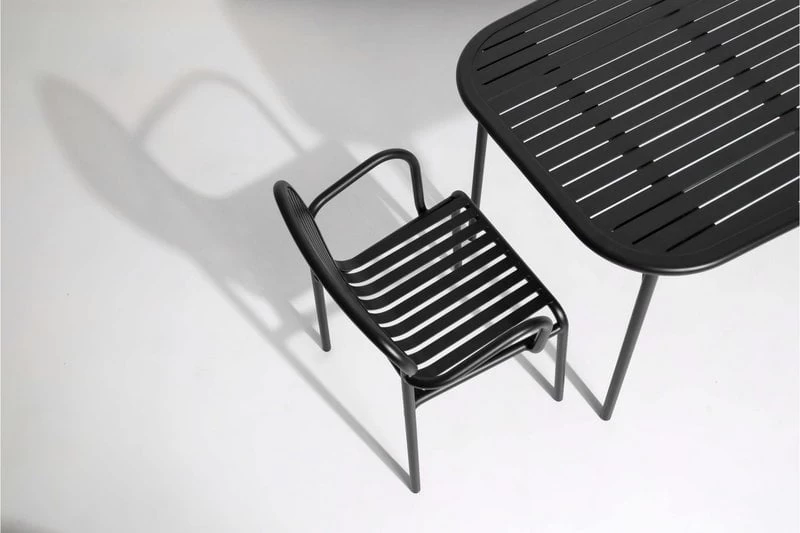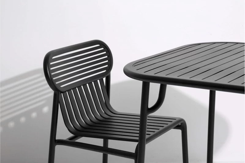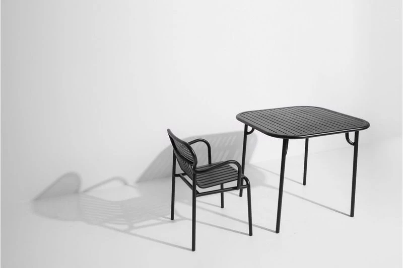 Der Tisch Week-end ist Teil der Petite-Friture-Kollektion, die Aluminiummöbel für den Außengebrauch umfasst. Der geradlinige Gartentisch passt wunderbar zu den Stühlen der Week-end-Kollektion.